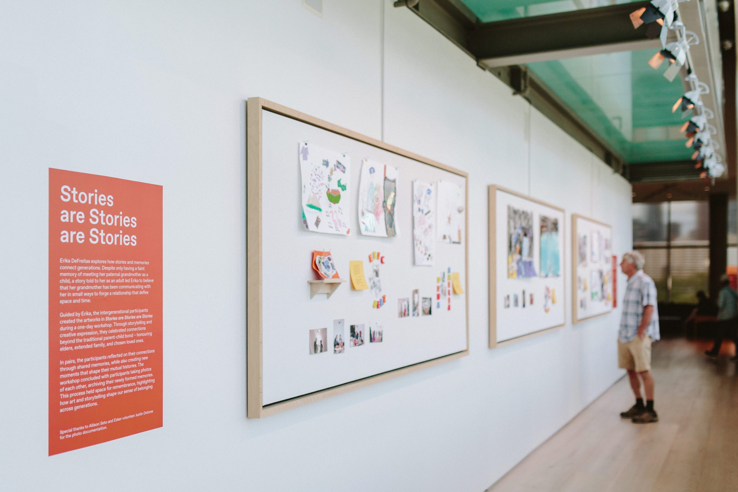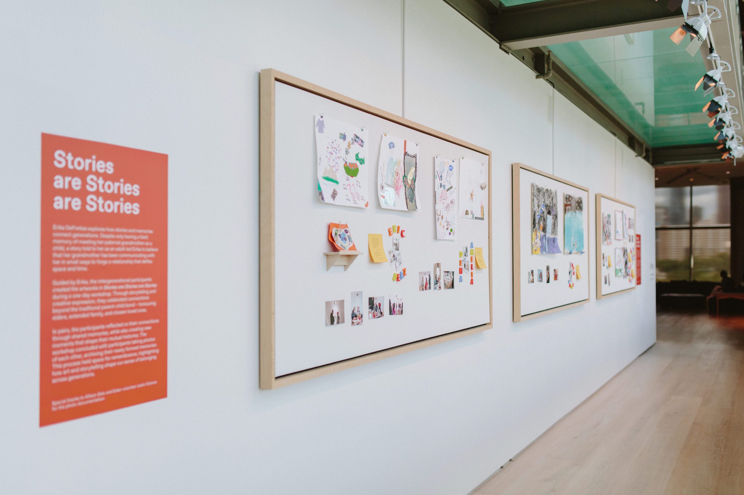 Erika DeFreitas explores how stories and memories connect generations. Despite only having a faint memory of meeting her paternal grandmother as a child, a story told to her as an adult led Erika to believe that her grandmother has been communicating with her in small ways to forge a relationship that defies space and time. Guided by Erika, the intergenerational participants created the artworks in Stories are Stories are Stories during a one-day workshop. Through storytelling and creative expression, they celebrated connections beyond the traditional parent-child bond – honouring elders, extended family, and chosen loved ones.