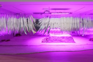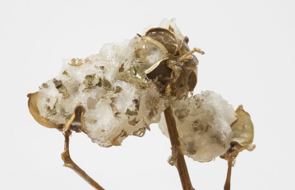 Under the long shadows cast by racial and plantation capitalism, how can we conceive of racial identity? Aria Dean and Inyang Essien construct self-definition from the shade of history. The crop most strongly associated with enslavement and plantation agriculture is cotton. In the guise of a stem of cotton, Aria Dean’s Dead Zone (4) is an internet signal jammer that prevents the internet access needed to post images of her work. In an era when images of Black people, Black art, and Black pain are widely circulated by non-Black people, Dean takes agency over her image and its distribution. Rice is braided into Black hair in Inyang Essien’s Our Rice series, revealing the millennia-long relationship that African people had with the grain, long before their uncredited physical and intellectual labour was exploited into a lucrative plantation crop. Our Rice returns African expertise to a narrative that would reduce African people to “slaves.”
