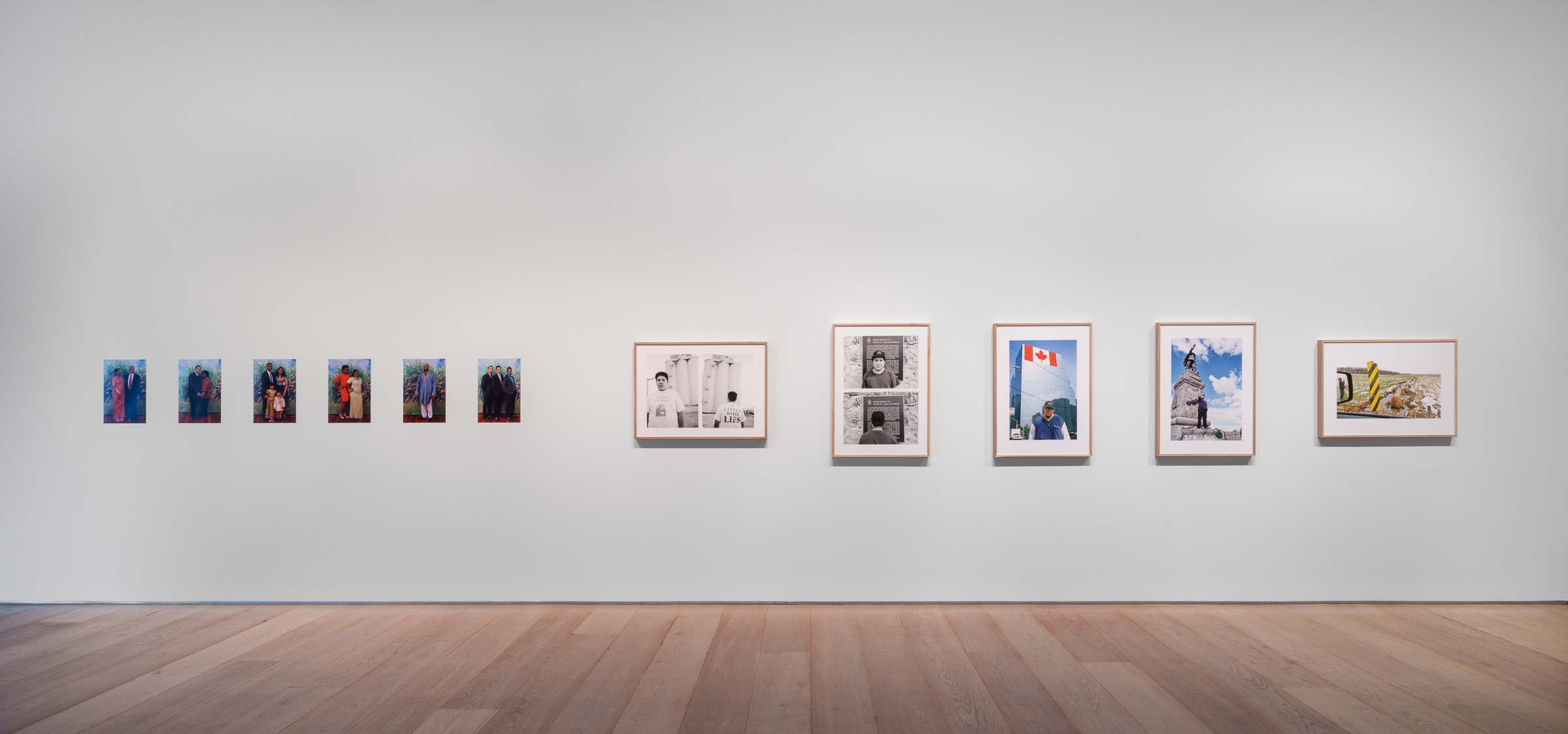 Place informs identity. So, how do racialized people relate to place, land, and nature after a legacy of trafficking, forced labour, and displacement? Jeff Thomas’ Bear Portraits, an ongoing series, asserts the enduring presence of the self-described “Urban Iroquois” behind the lens, with his maturing son in front. Countering colonial prescriptions for where they belong, the two define and locate their own Indigeneity. Standing in a patch of urban landscaping, in her self-portrait In Search of a Certain Eden, Chanell Stone explores the connection between the Black body and nature, counter to dominant ideas that racialized people’s relationship to nature is limited to labour. In Andil Gosine’s Cane Portraits, the descendants of indentured and enslaved workers hold poses against a backdrop of sugar cane stalks. No longer constrained by the plantation, the sharply dressed participants sit for portraits at their leisure.