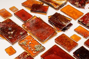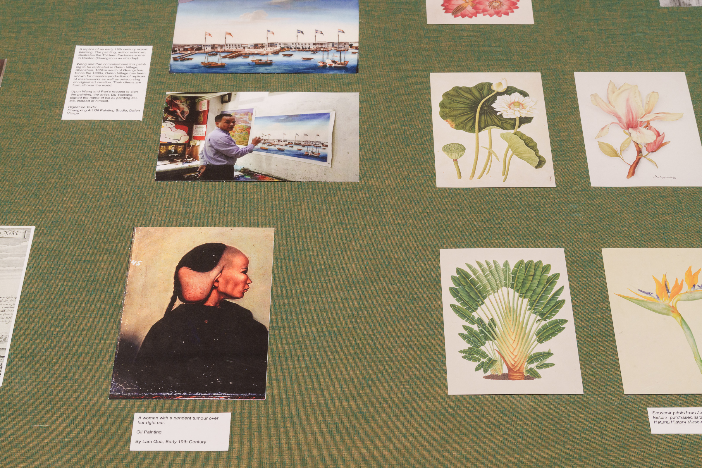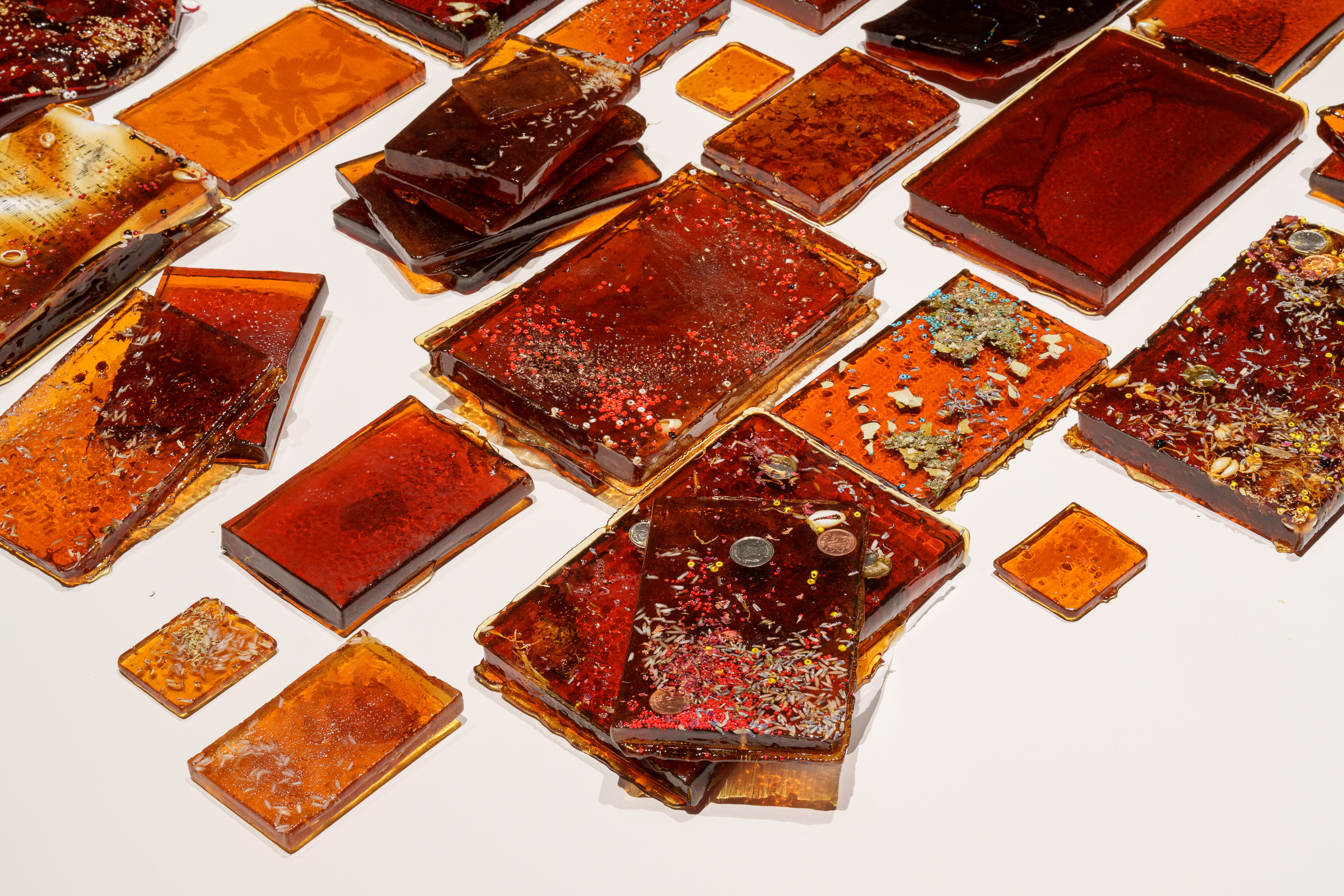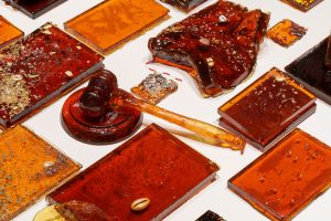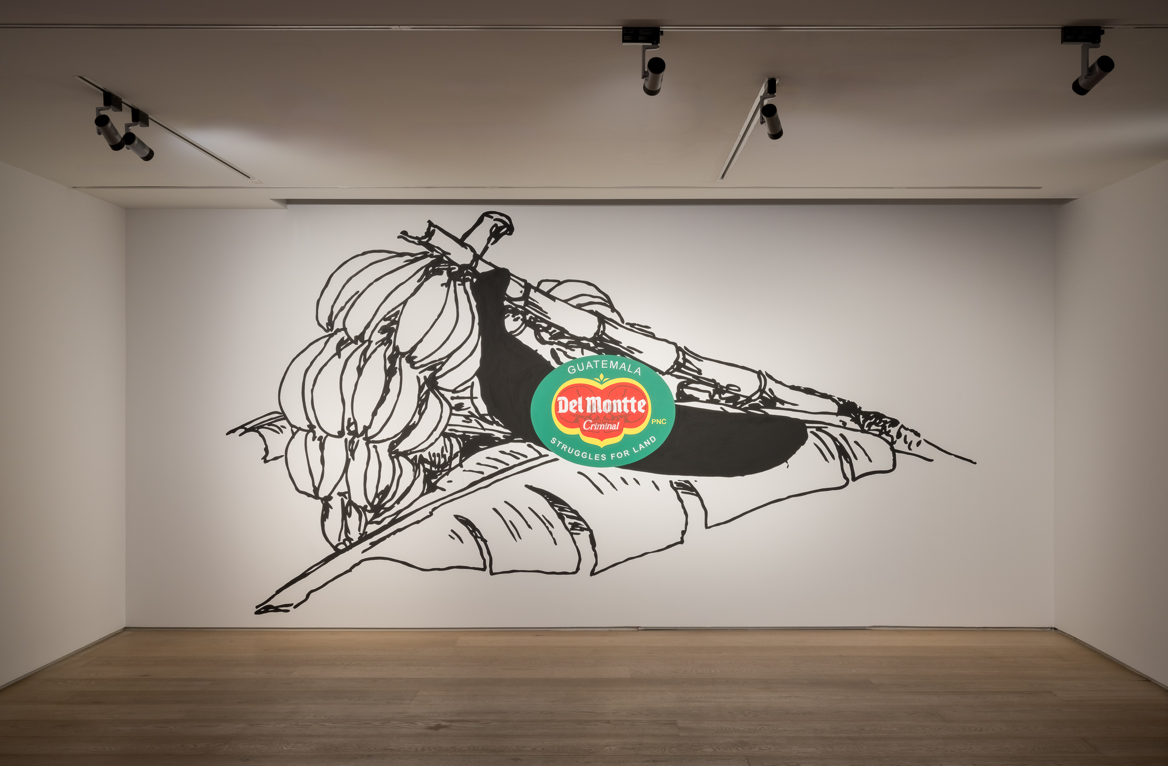 Today, numerous aspects of our day-to-day lives are linked to structures invented or instrumentalized to limit the freedoms of racialized people in favour of colonial capitalism. Carrie Mae Weems confronts the falsehood of institutional neutrality in From Here I Saw What Happened and I Cried, through a deep reading of photographs of an enslaved family staged and commissioned in 1850 by a Harvard professor invested in eugenics. With trenchant prose layered over the images that she has tinted an emblematic red, Weems witnesses the humanity of the sitters under scientific abuse. Theories of racial difference, foundational to medical racism, support the maintenance of colonial power. The “miasma” in the title of Bo Wang’s and Lu Pan’s Miasma, Plants, Export Paintings was a theory of bad air that was exploited by the British stationed in Hong Kong after the opium wars. Through erroneously asserting that disease in tropical places hung in the air around native inhabitants, the British ghettoized communities and appropriated prime land for themselves. Minerva Cuevas’s Del Montte—Bananeras subverts the familiar fruit sticker to point to the collusion between corrupt officials and multi-national fruit companies headquartered in Europe and the United States in the exploitation of workers, the environment, and Indigenous communities, which has been enabled by a long history of U.S. imperialism and opportunism in low-and middle-income countries. In Andrea Chung’s Proverbs 12:22, bibles encased in sugar draw together the relationship between the manipulation of religion and language and the control and coercion of the enslaved on sugar plantations.
