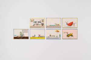 Two works playfully gesture toward rewriting/righting the course of colonial history. Drawing from his familial involvement in a historical British scheme to retain imperial control through pineapple farms in Kenya, David Blandy conceived Gathering Storm, a speculative world-building game where players collaborate to imagine a post-colonial sci-fi world. Daniela Ortiz revisits European colonial events to write in unsung heroes. In the story-board style The Rebellion of the Roots, anti-colonial plants epically rise up and assist racialized people in achieving justice. The series shown here has been created specifically for the local and Canadian context, taking inspiration from regional events and plants.