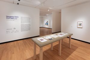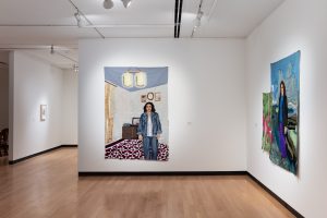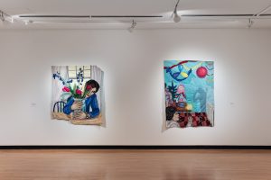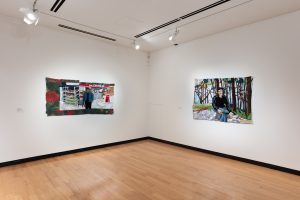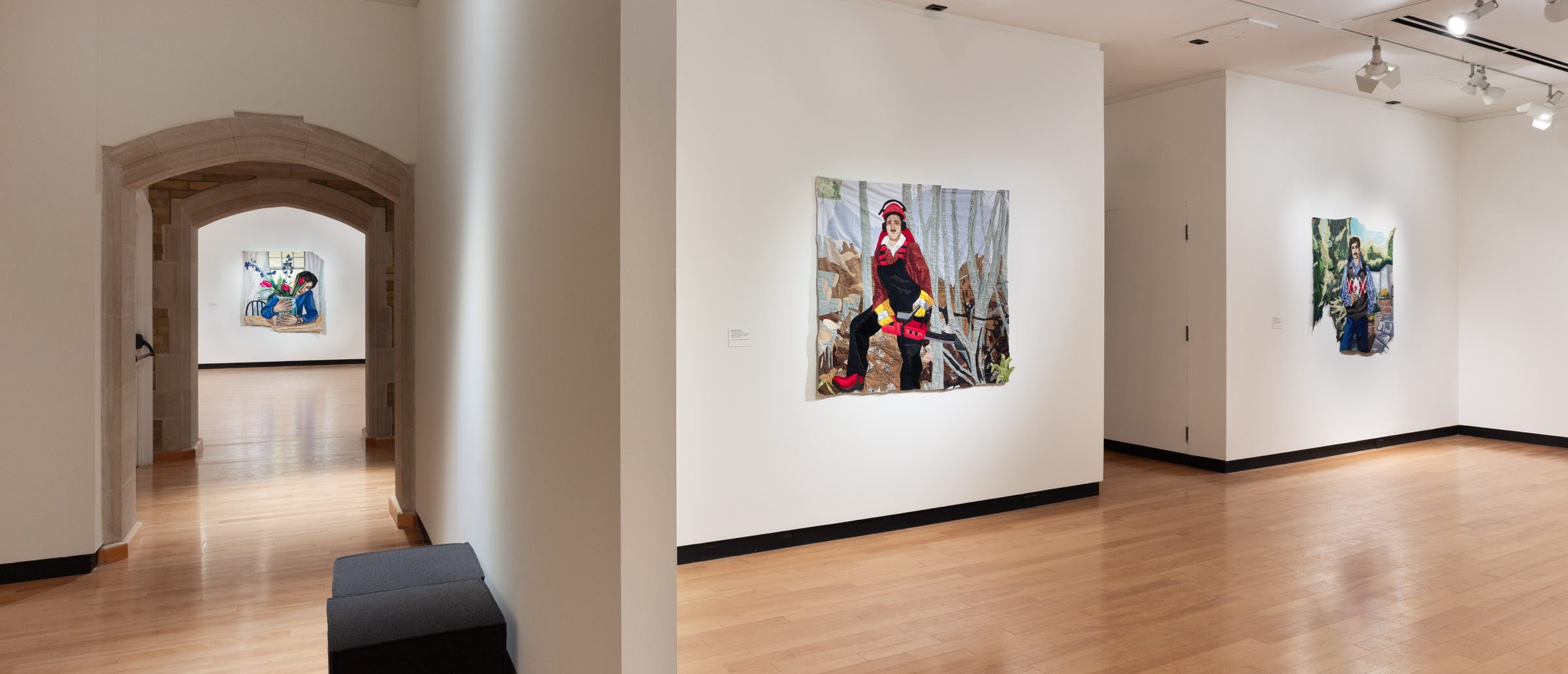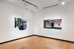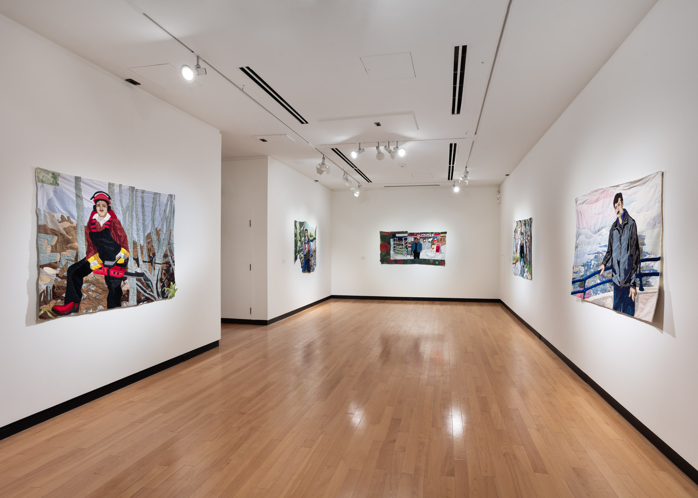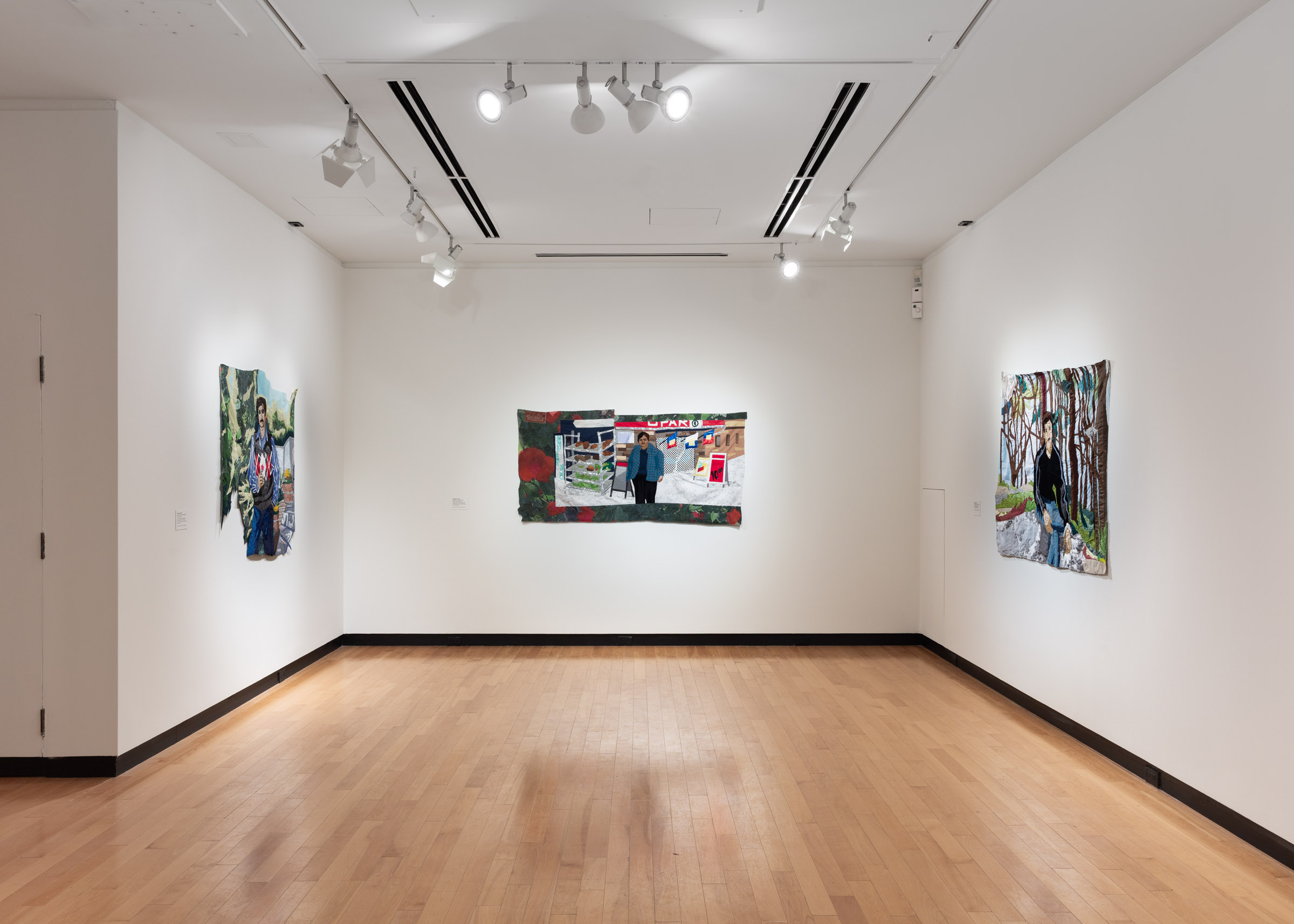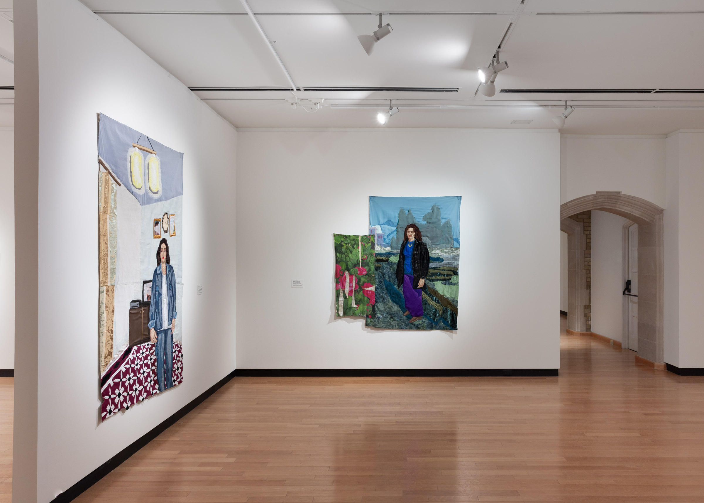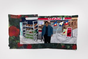 Hangama Amiri creates intricately layered textile compositions that muse on home, kinship, and memory. PARTING/فراق builds on an ongoing body of work that focuses on the artist’s personal history and diasporic experience. Following the rise of the Taliban in Afghanistan, Amiri and her family fled their home in Kabul in 1996, which necessitated a period of familial separation. Her father worked in Denmark and later Norway, while Amiri lived in Dushanbe, Tajikistan with her mother and three siblings, before the family settled together in Halifax in 2005. This nine-year separation was marked by the frequent exchange of letters, snapshots, and gifts; messages that outlined the contours of her family’s lives and offered glimpses into jobs, celebrations, or daily acts of care.