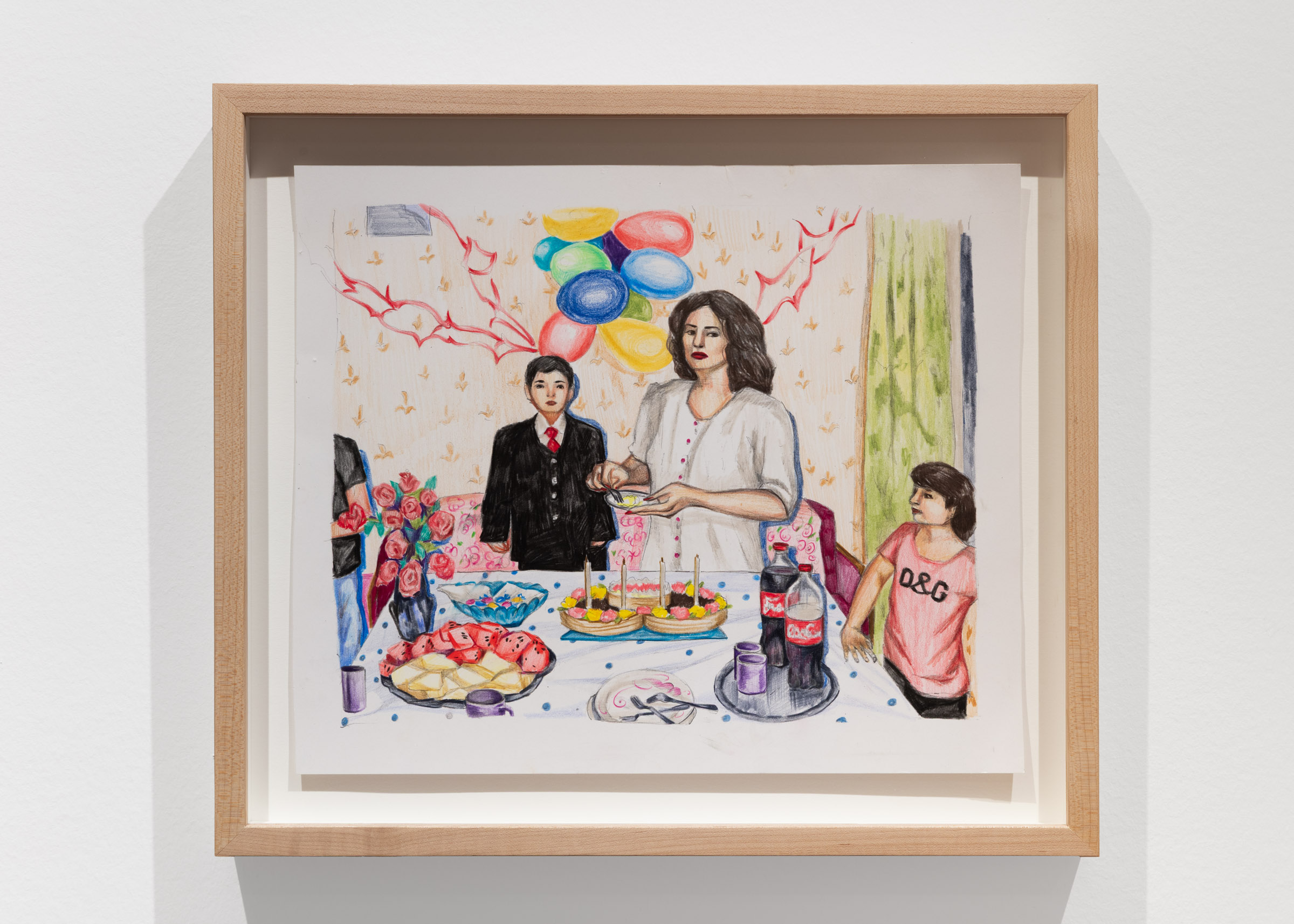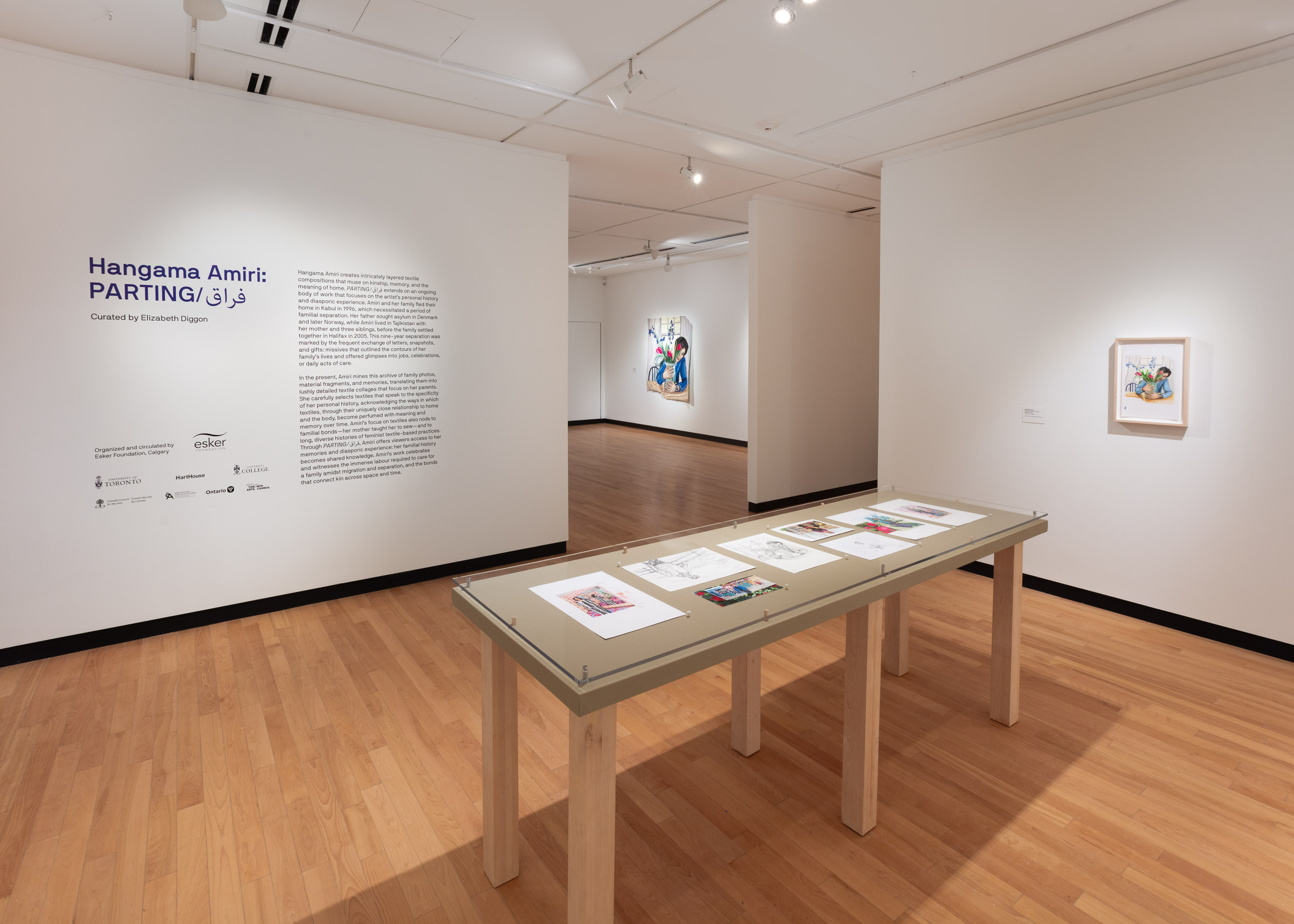 The resulting work can be read as the expression and excavation of memory, connection, and kinship through material and process. The family photographs and memories that form the basis of this body of work are twice translated: once through listening and remembrance, and again through material and gesture. Through the shared labour of conversations and collective remembering, Amiri’s parents become crucial collaborators to her work. Amiri’s process is also a profound act of witnessing: it necessitates that she reconcile with her parents’ histories, and revisit childhood memories through the gaze of an adult. Through PARTING/فراق , Amiri offers viewers access to these memories: her familial history becomes shared collective knowledge. Cumulatively, Amiri’s work celebrates and witnesses the immense labour required to care for a family amidst the trauma of migration and separation, and the bonds that connect kin across space and time.