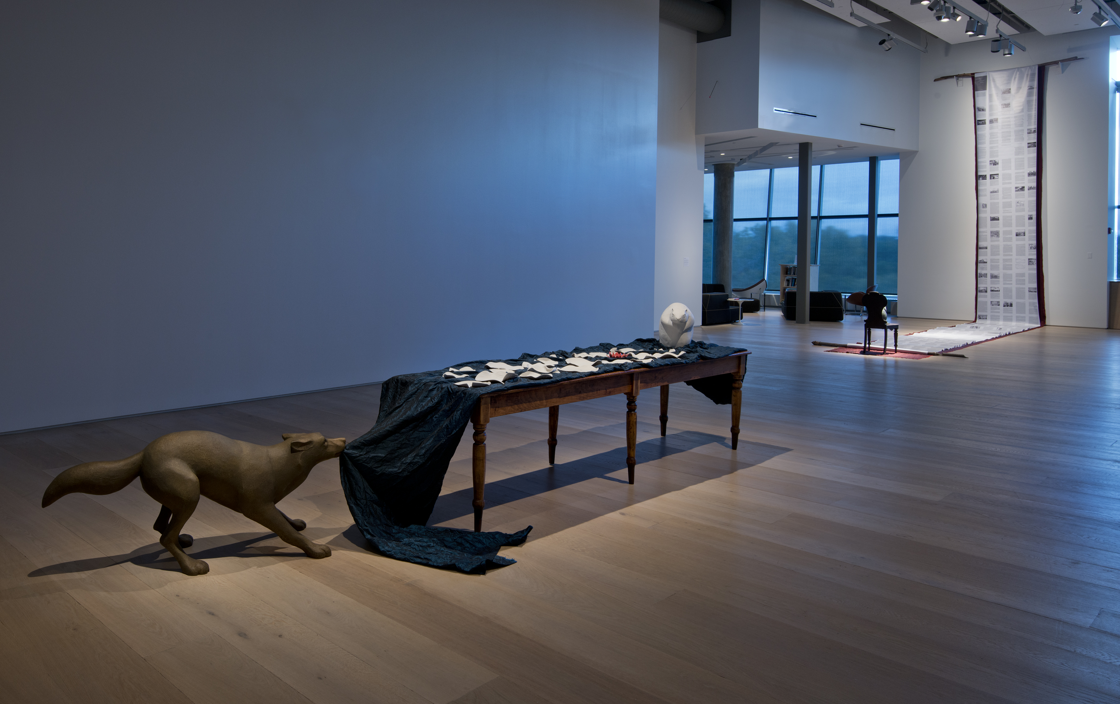 Mary Anne Barkhouse’s artistic practice is deeply engaged with environmental and Indigenous issues, and evokes the influence of empire on the many human and animal inhabitants of the land we now call Canada. The works in Le rêve aux loups (The Dream of Wolves) reflect on the mistaken colonial understanding of land and nature as commodities for human exploitation, rather than as a shared resource and an ecosystem with its own intrinsic value.