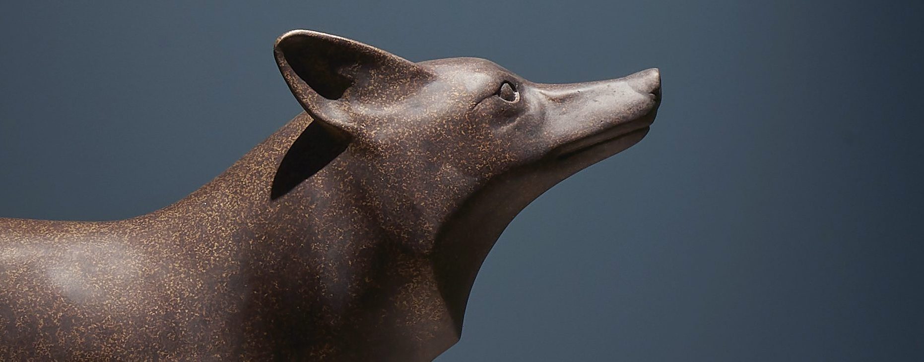 Barkhouse’s installations suggest a collision between the historic home, a theatre set, and a Natural History Museum. Owls, beavers, and foxes perch on polished English dining tables made from Canadian beech with the carved talons of a bird of prey, or they stretch out on French, lichen-green velvet chaise longues. As we move between rooms (or galleries) the luxurious mise en scène of her sculptures is embellished with gilded French side tables, cast glass goblets of hibernating bats, and family dynasty portraits of wolves presented in ornate baroque picture frames. In a subversion of the narrative of land theft and politics, the animals have taken over the parlour, begging the questions: “Who owns this land?” and “Who is the intruder?”