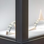Semenoff’s series of three self-supporting arches unfold in sequence, creating a succession of portals or thresholds in space. Each arch consists of a series of transparent resin blocks, which have been cast into interlocking forms. Hollow beeswax pyramids form the keystone and base of each arch. In keeping with Semenoff’s architectural reference point, the structural integrity of the arches is entirely self-evident. Gravity, geometry, and compression hold the form together; nothing is hidden.